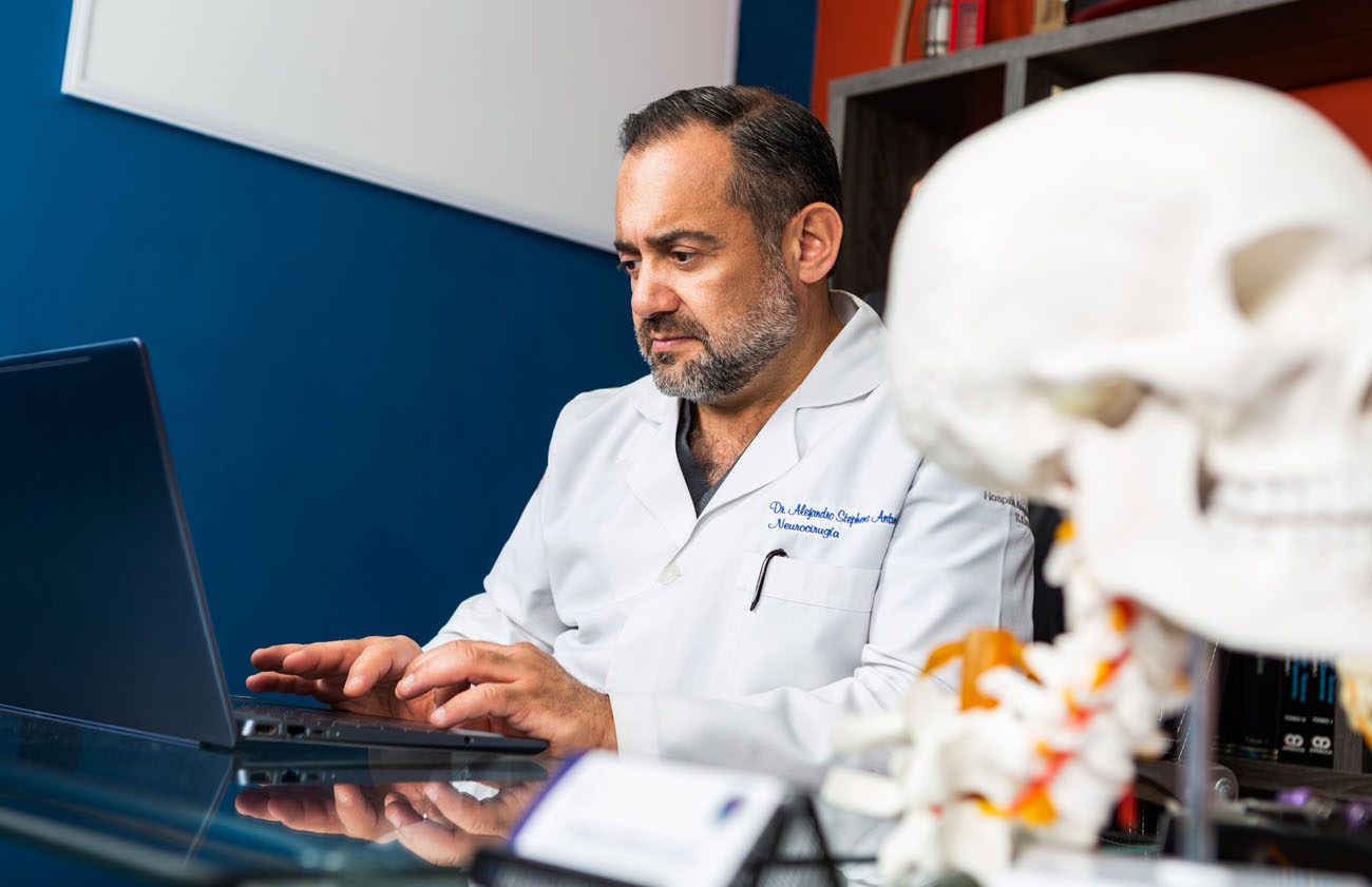 Con más de 25 años de experiencia clínica, el Dr. Alejandro Stephens se ha consolidado como uno de los neurocirujanos más reconocidos de Guadalajara. A lo largo de su carrera ha tratado exitosamente enfermedades del sistema nervioso central y periférico, destacándose por su ética profesional, preparación constante y enfoque centrado en la salud del paciente.